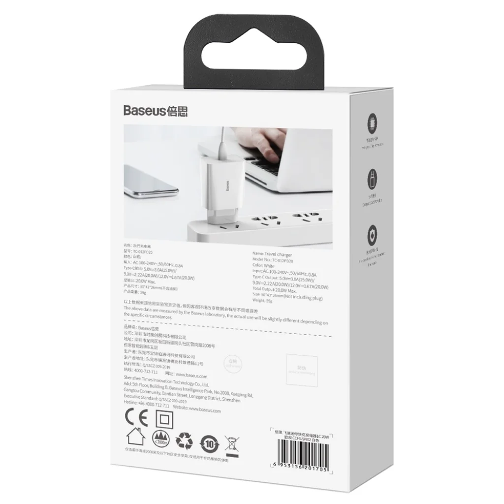 A Baseus Speed Mini PD 20W egy fejlett töltő, amely maximális 3A árammal rendelkezik, és egyetlen USB Type-C aljzattal van felszerelve. Elég energiát biztosít ahhoz, hogy gyorsan feltöltse a legnagyobb elérhető mobil eszközöket is. A 20W teljesítmény a legújabb iPhone-ok töltésére van szánva. A használt tartós anyagok lehetővé teszik, hogy a töltő évekig szolgálja tulajdonosát.