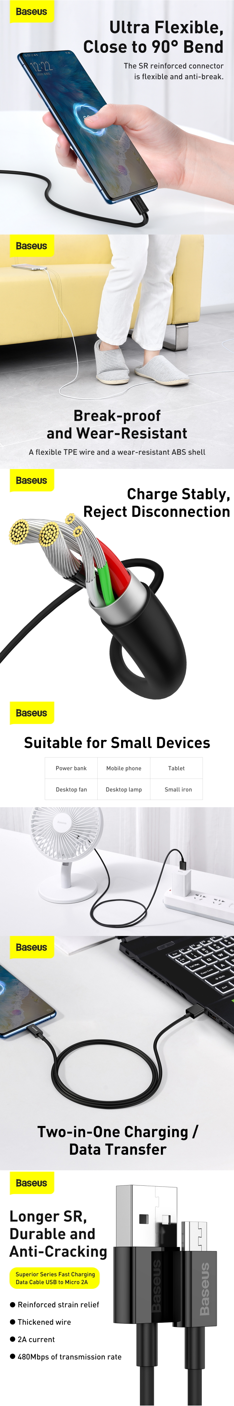 A mikro -USB -kábel univerzális, kompatibilis minden olyan töltővel, amelynek maximális árama legfeljebb 2A, és lehetővé teszi az adatok egyszerű küldését az eszközök között. Sérülésálló ABS és TPE szövetekből készült. Segítségével feltöltheti okostelefonját vagy táblagépét, és hasznos lesz abban az esetben, ha eszközét számítógéphez kell csatlakoztatnia. A 480 Mbps átvitel nagy átviteli sebességet garantál.