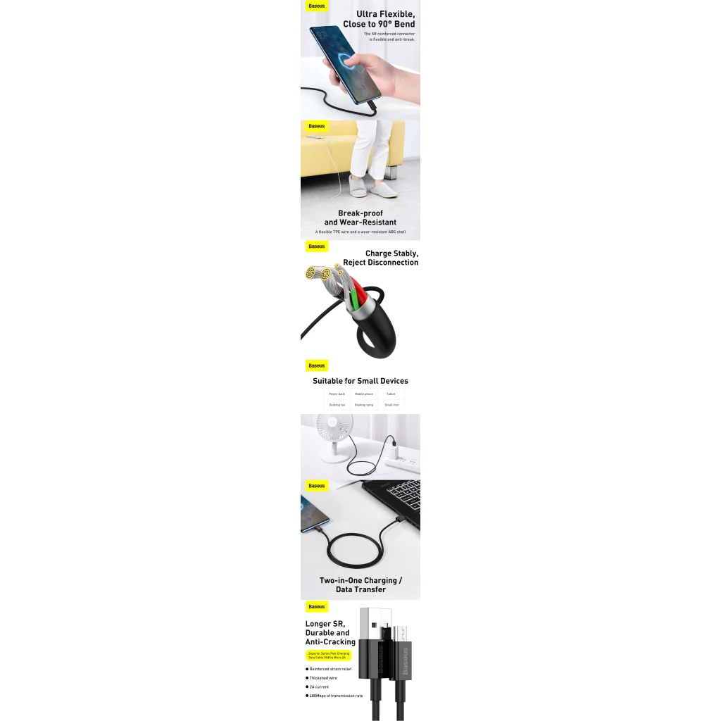 A mikro -USB -kábel univerzális, kompatibilis minden olyan töltővel, amelynek maximális árama legfeljebb 2A, és lehetővé teszi az adatok egyszerű küldését az eszközök között. Sérülésálló ABS és TPE szövetekből készült. Segítségével feltöltheti okostelefonját vagy táblagépét, és hasznos lesz abban az esetben, ha eszközét számítógéphez kell csatlakoztatnia. A 480 Mbps átvitel nagy átviteli sebességet garantál.