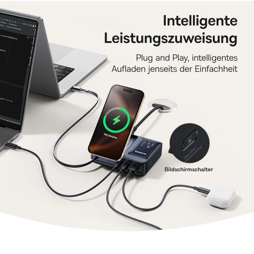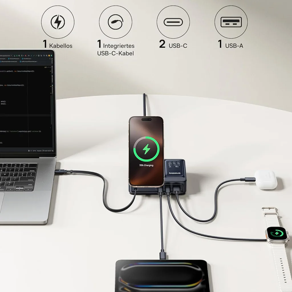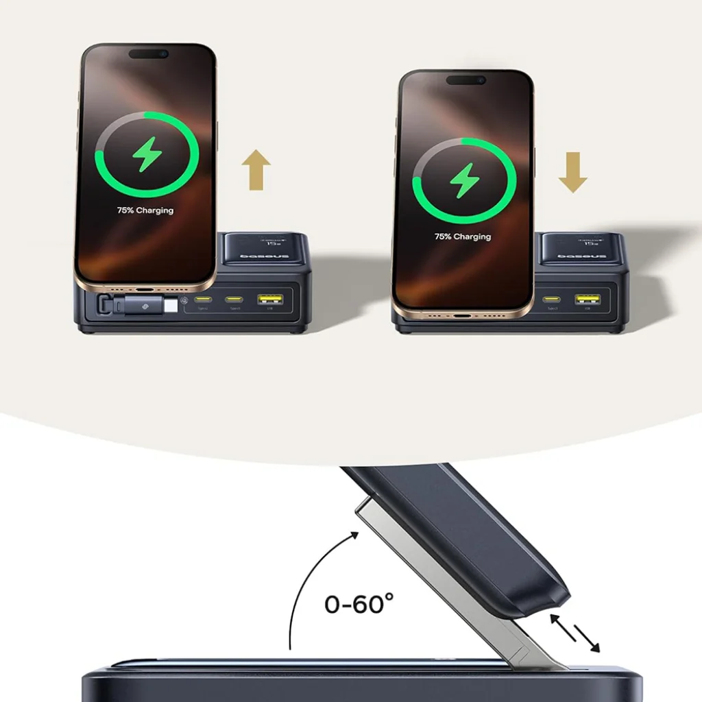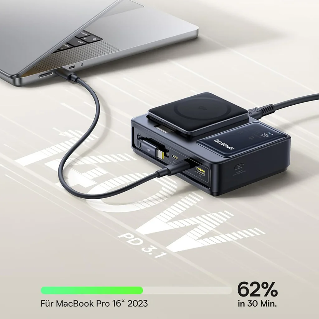 Termék leírás Baseus - Töltőállomás Nomos (P10170902123-00) - MagSafe Töltő, Type-C, Digitális Kijelző, 5 az 1-ben, 140W - Fekete