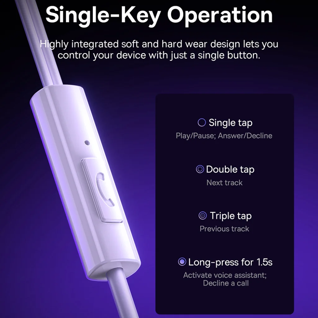 Válaszd a Baseus Encok CZ11 Type-C "Moon White" vezetékes fülhallgatót, ha egy stílusos, kényelmes és kiemelkedő hangminőségű kiegészítőre vágysz, amely minden igényedet kielégíti a mindennapokban, legyen szó zenehallgatásról, podcastokról vagy telefonhívásokról.