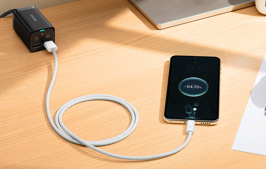 Termék leírás Csatlakozás: USB A - USB Type-CTeljesítmény: 100W (20V 5A)Megerősített, nylon harisnyázott kábelMaximum feszültség: 5AGyorstöltésre alkalmas (100W/66W/40W/22.5W/18W)Adatátvitelre is képes: 480MbpsKábelhossz: 1m