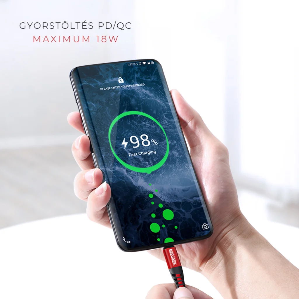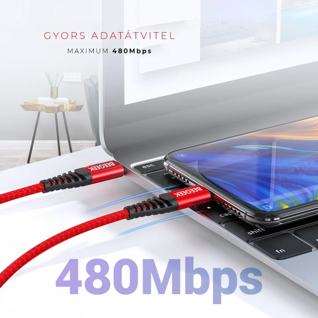 BeeGeek SCAP42-1M USB-C/USB-C 1m piros-fekete