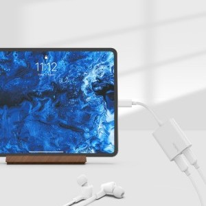 Belkin rockstar dual usb-c audio + töltő adapter – fehér