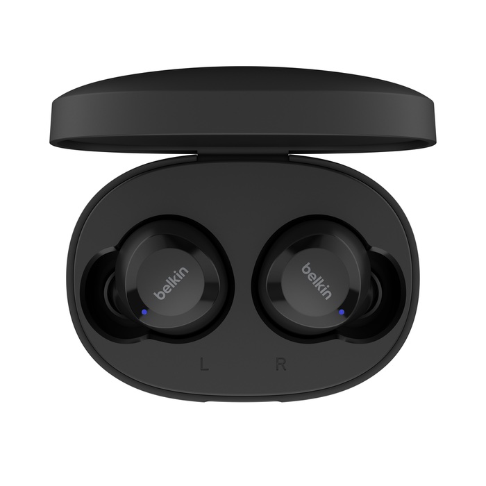 A modern, matt fekete kivitel és a diszkrét Belkin logó elegáns megjelenést kölcsönöz a fülhallgatóknak. A kicsi, áramvonalas töltőtok könnyedén elfér zsebben vagy táskában, így mindig magával viheti kiváló hangzását. A tok belsejében található „L” és „R” jelölések segítenek a fülhallgatók helyes és egyszerű elhelyezésében.