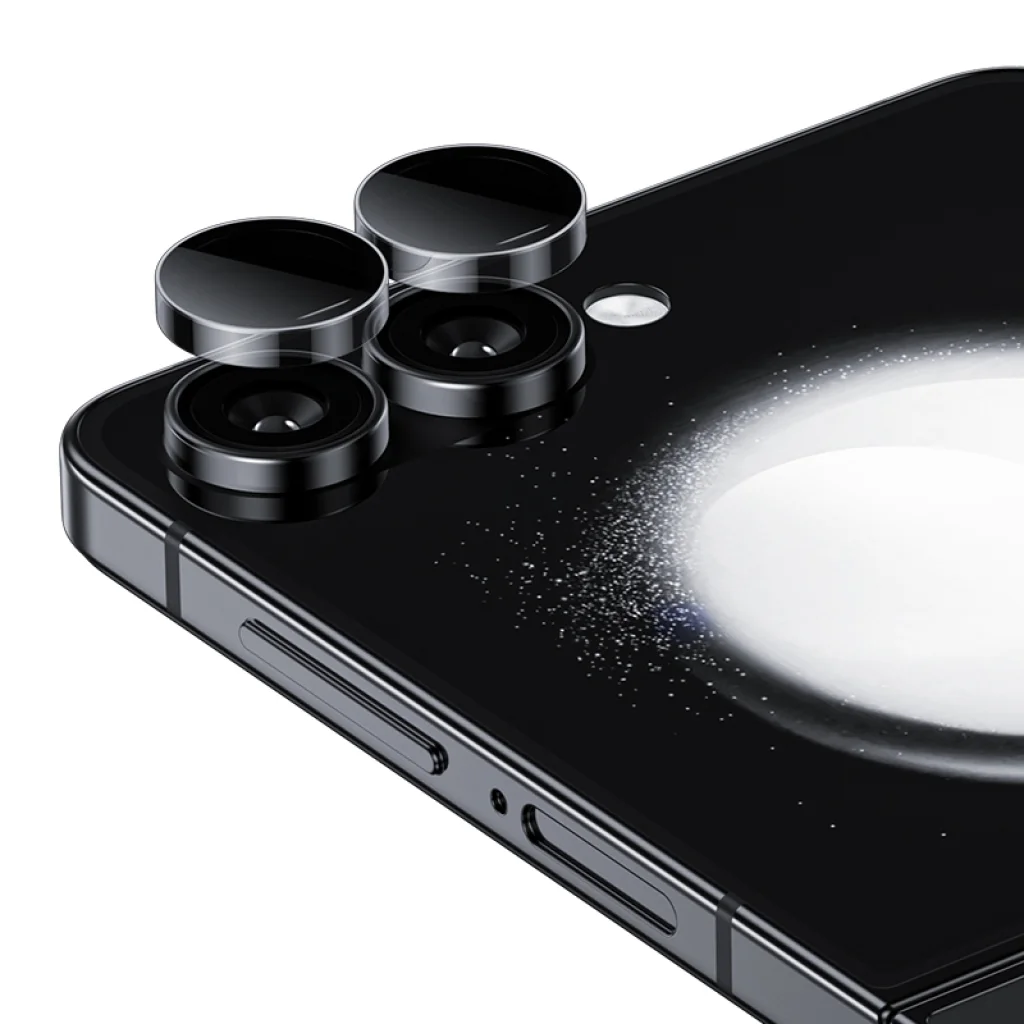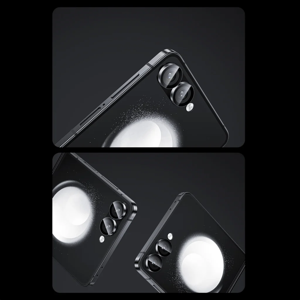 - Precíz, ultra-vékony illeszkedés: Minden egyes lencsevédő gondosan megtervezett, hogy tökéletesen körbeölelje a Z Flip 7 egyes lencséit, harmonikusan illeszkedve a telefon dizájnjába anélkül, hogy vastaggá vagy zavaróvá tenné azt. Prémium érzetet biztosít, miközben alig észrevehető.