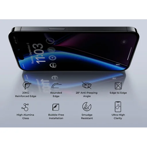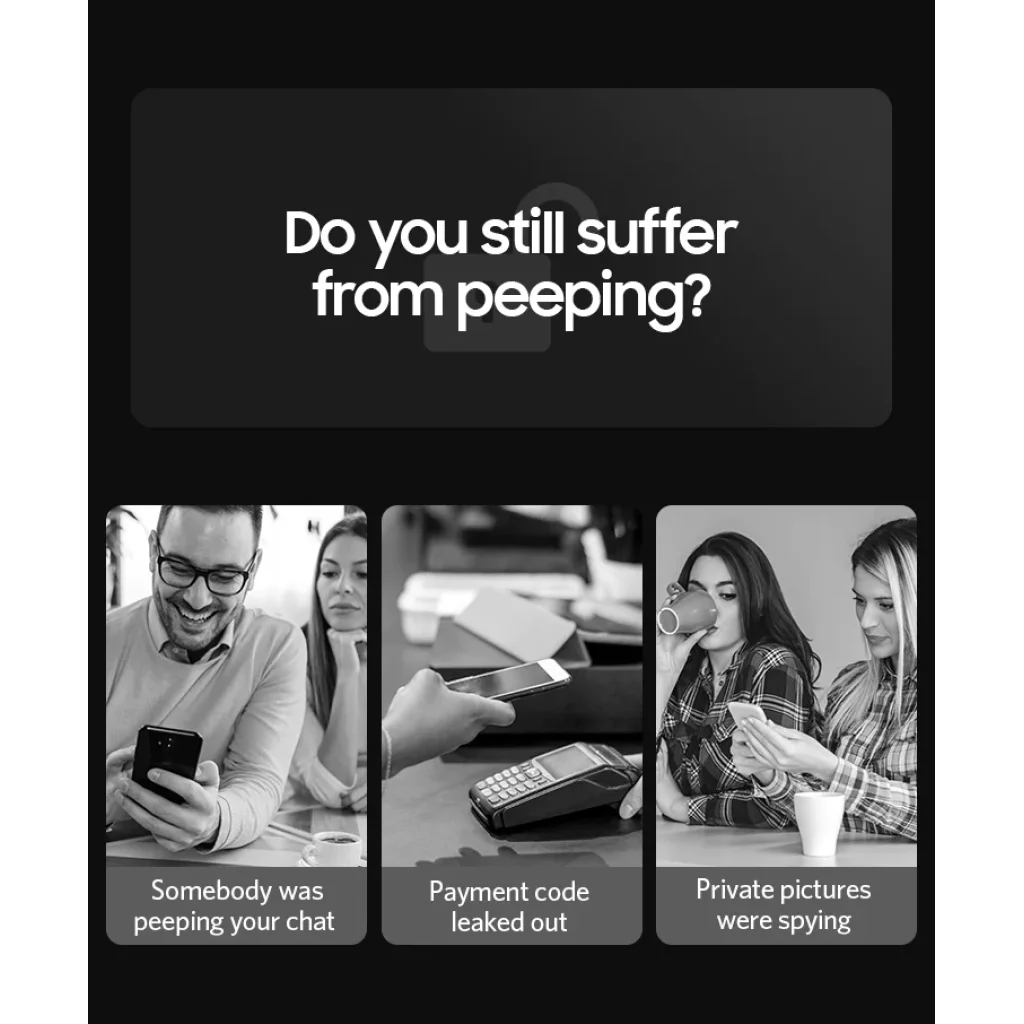 Többet kínálunk, mint kijelzővédelmet; Az Ultra Shield Privát Üvegfólia megőrzi a kijelzőn lévő tartalom privát voltát a kíváncsiskodó szemek és vizuális hackerek ellen.