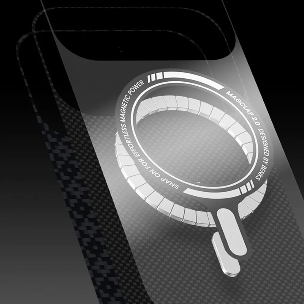 Az elegancia és a presztízs szimbóluma: A Benks logó és a belső mágnesek a kompozit réteg alatt záródnak - láthatóak, de érinthetetlenek, a dizájnon keresztüli kifinomultságot képviselik.