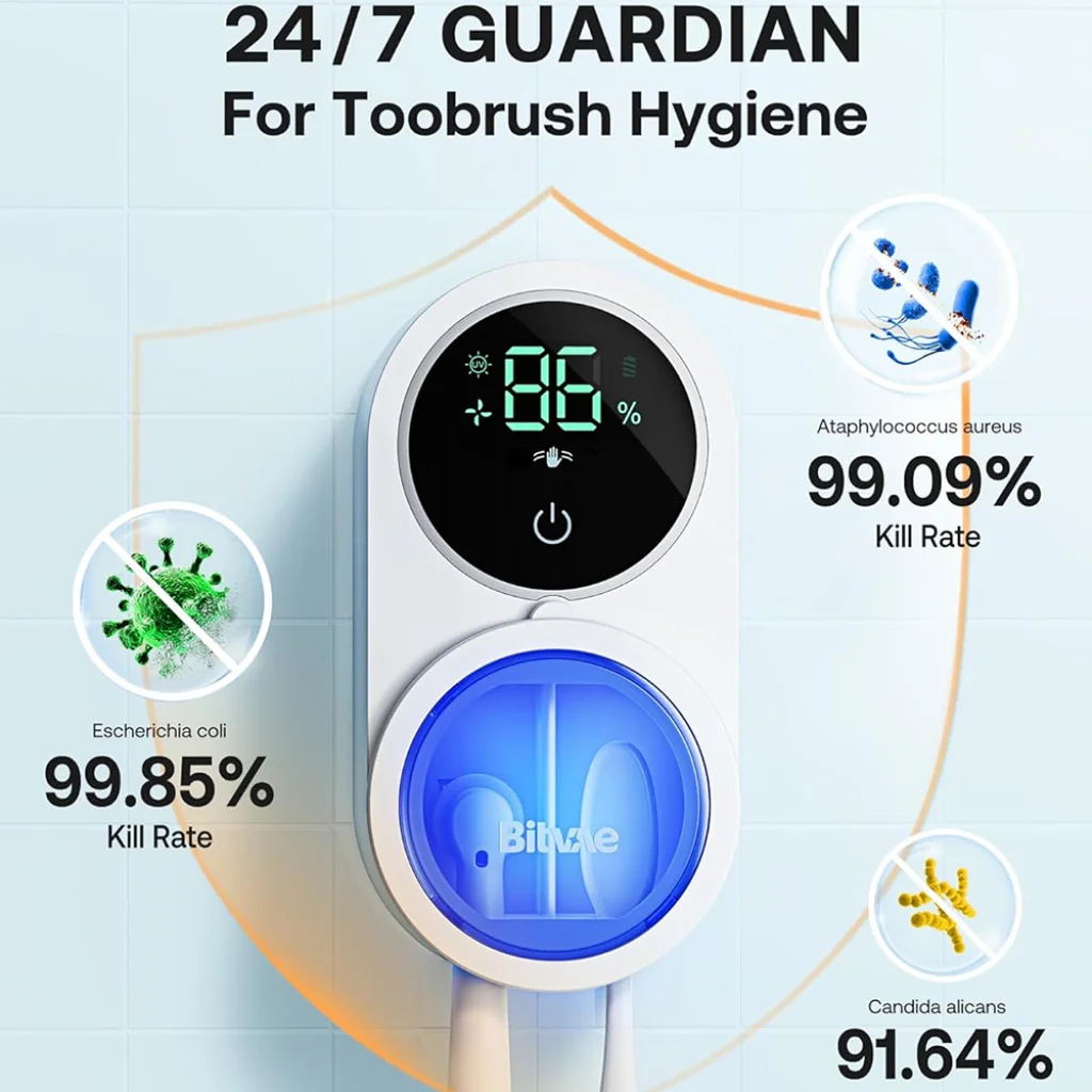 - Élvezze a friss és biztonságos fogmosási élményt minden alkalommal, tudva, hogy fogkeféje mentes a káros baktériumoktól.
