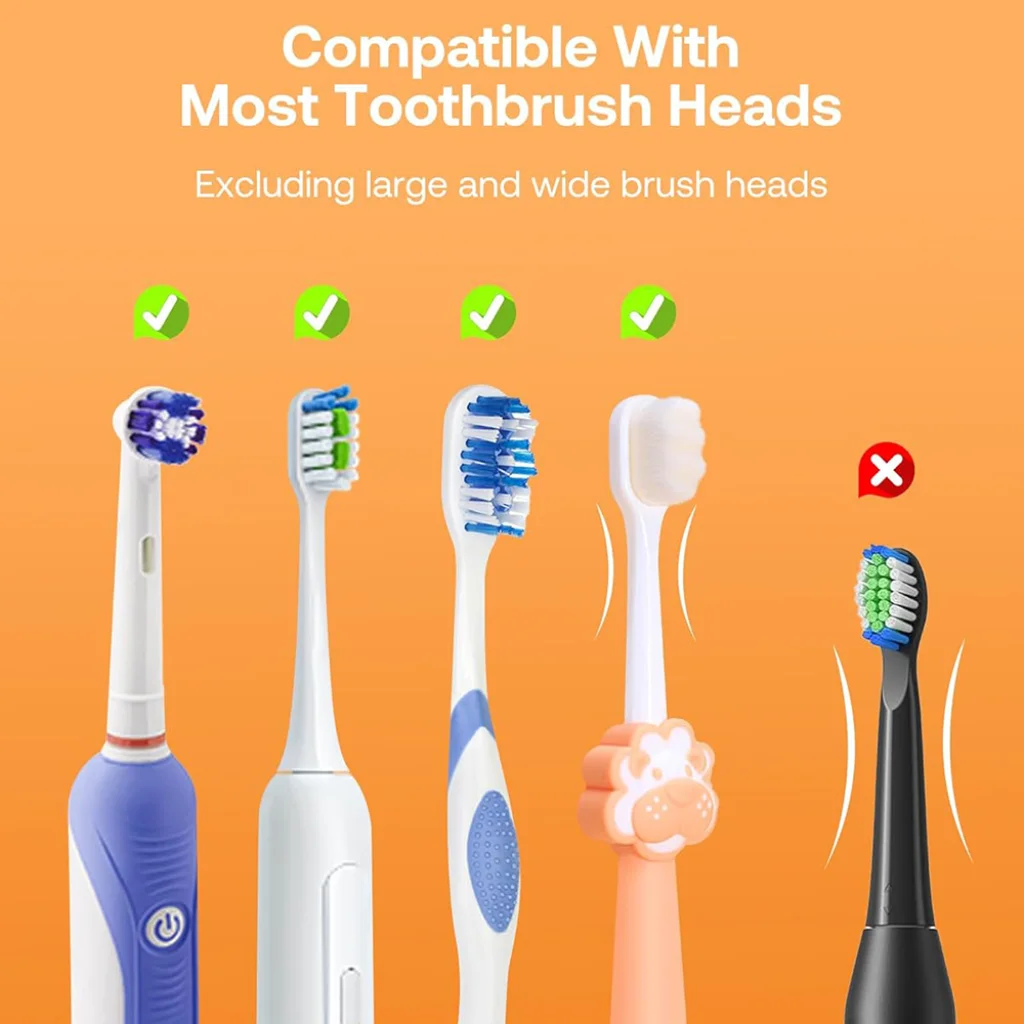 - Széles körű kompatibilitás: A legtöbb elektromos és manuális fogkefe fejjel kompatibilis, biztosítva a sokoldalú használatot (kivéve a nagyon nagy és széles fejeket).