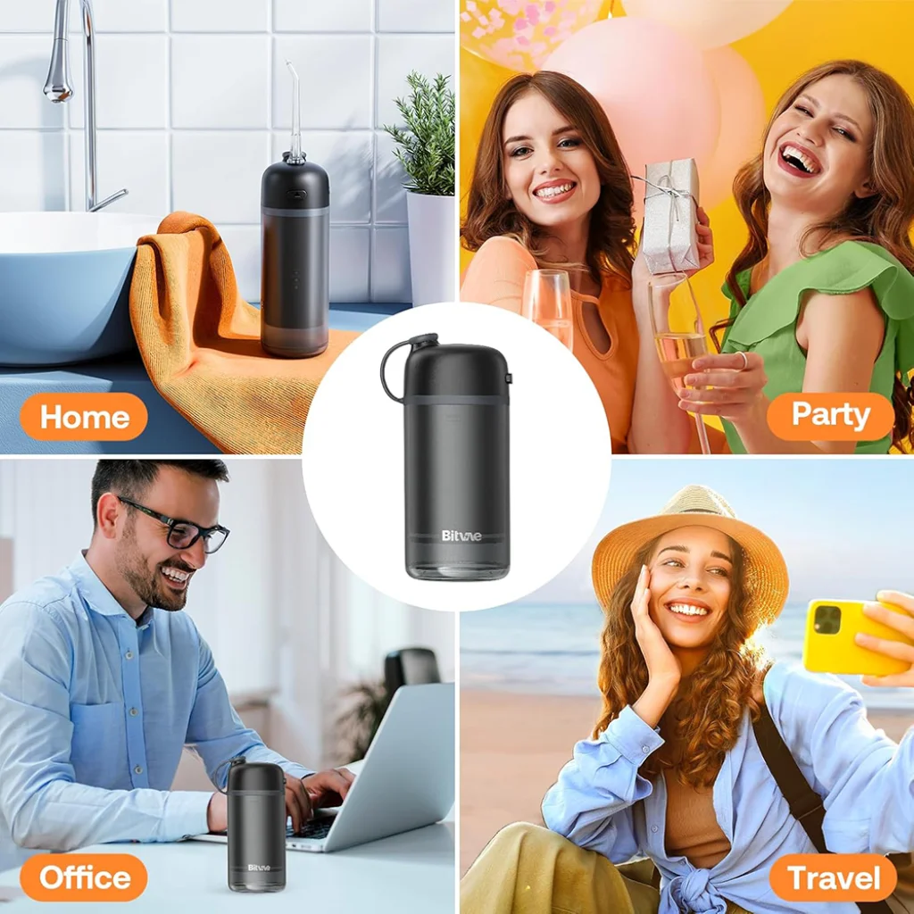 Termék leírás Bitvae - Vízsugár Flosser P1 (BVP1) - Teleszkópos Víz Tartállyal, 4x 360° Forgatható Fúvóka, Érzékeny Fogakhoz, IPX7 - Fekete