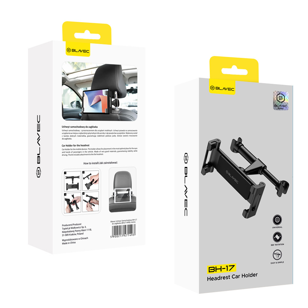- Készlet tartalma: Blavec BH-17 autós fejtámlára rögzíthető tartó állítható karokkal