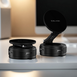 - Vákuumos rögzítőrendszer be- és kikapcsolás – Csak tekerje el a tartó gyűrűjét az erős vákuum létrehozásához és rögzítse azt bármilyen sík felülethez. Nincs szükség szerszámra.