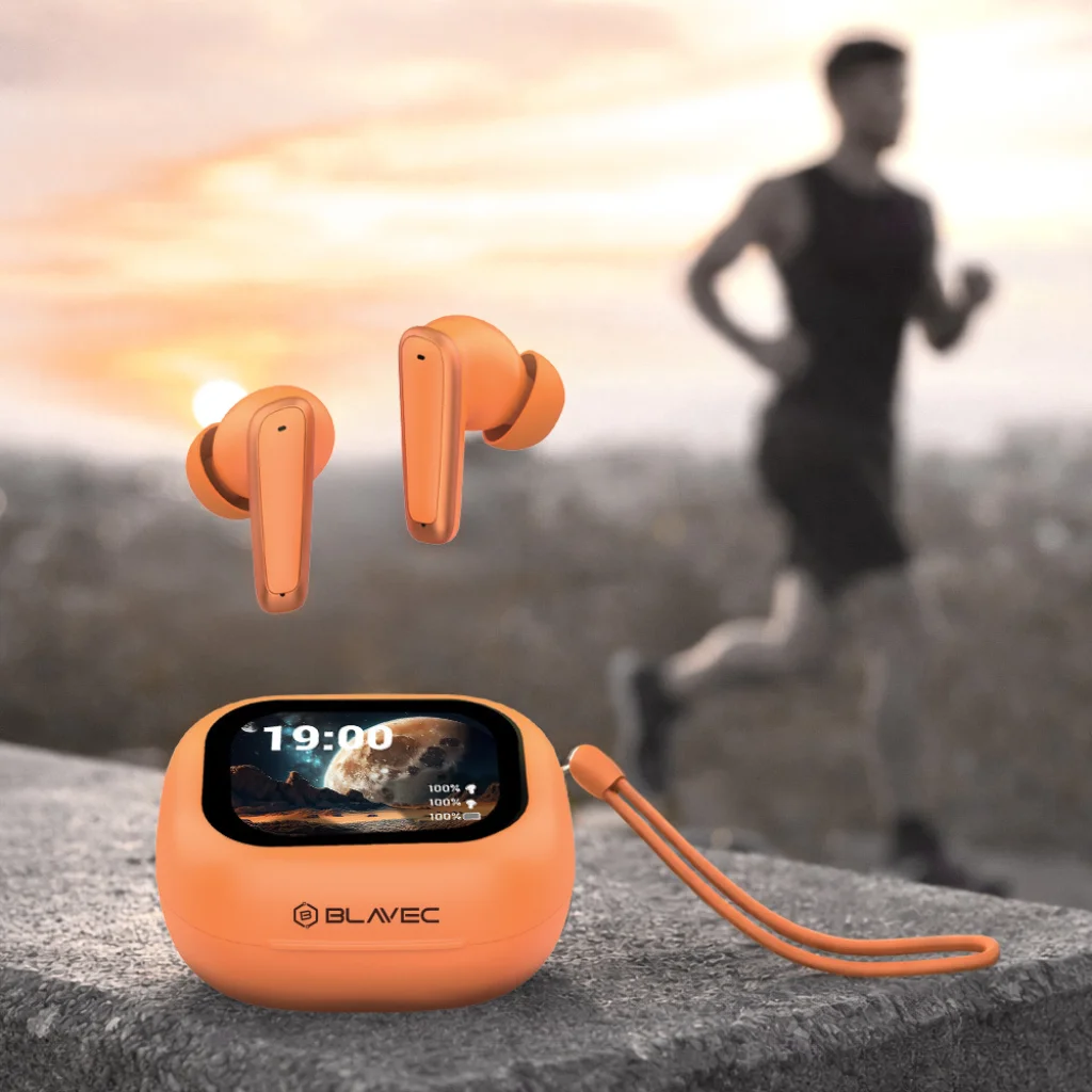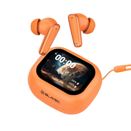 Blavec BW-07 Live TWS Bluetooth Fülhallgató LCD kijelzővel – Modern vezeték nélküli fülhallgató nagy kijelzővel, stabil Bluetooth 6.0 kapcsolattal és kényelmes csuklópánttal a könnyű hordozhatóság érdekében.