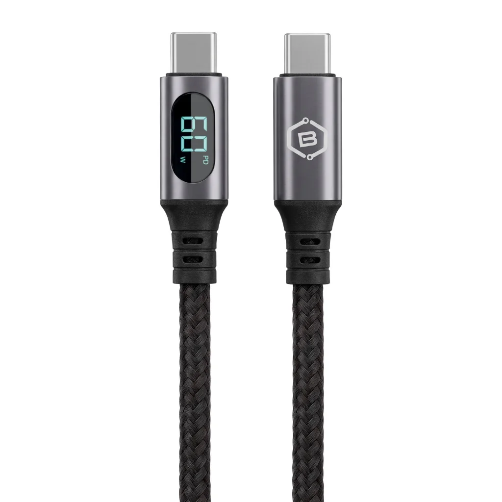 Blavec Cable Zumi fonott - Type C to Type C - PD 60W 3A LCD kijelző 1 méter Apple CarPlay/Android Auto (CZU-CC3B10) fekete
