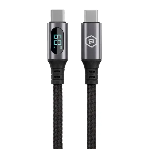 Blavec Zumi fonott kábel – USB-C to USB-C – PD 60W 3A LCD kijelzővel 1 m Apple CarPlay / Android Auto Gyors Power Delivery 60W töltés energia előnézettel
