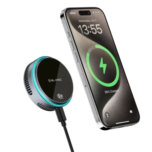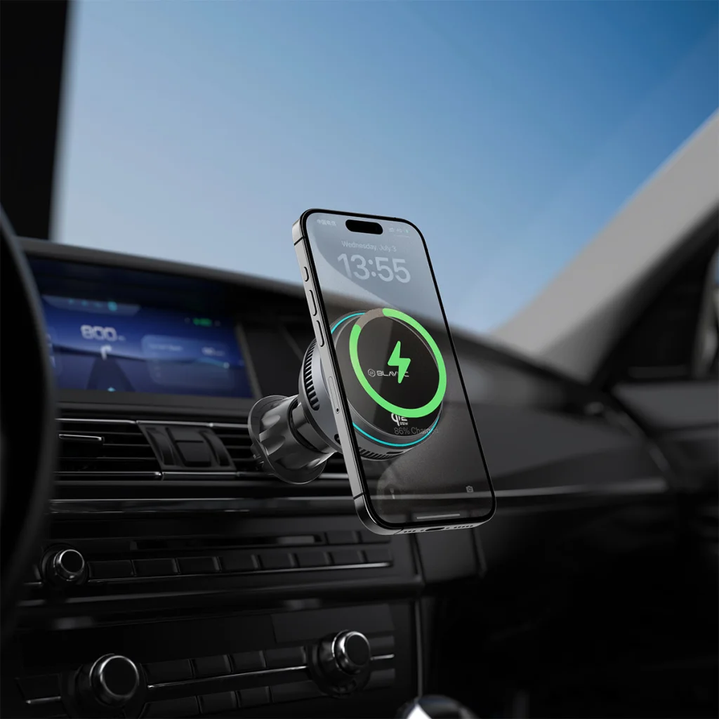 Blavec Autós Tartó BHC-05 Qi2.2 25W Mágnesesen Levehető Vezeték Nélküli Töltő a Légbeömlőre (BHC05-MWIB) Fekete