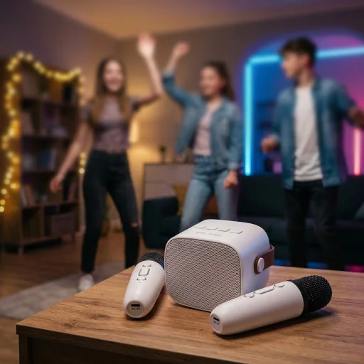 - Két karaoke mikrofon – Olyan készlet, amely lehetővé teszi az együtt éneklést és duett előadások élvezetét.
