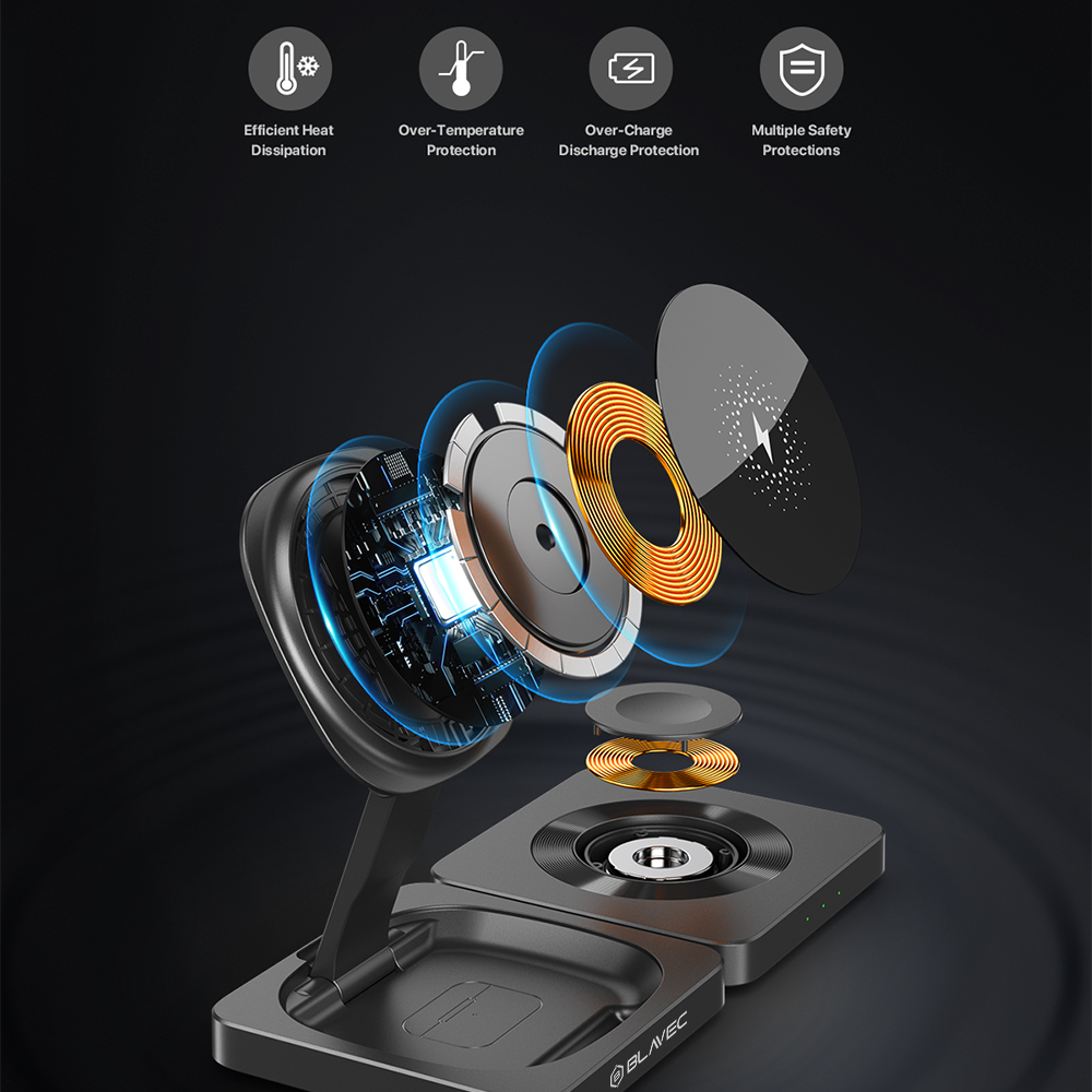 A Blavec BQI-02 Qi 15W mágneses, Magsafe-kompatibilis, 3 az 1-ben töltőállomás a modern kor elvárásainak megfelelő, elegáns és rendkívül funkcionális megoldást kínál az okoseszközök töltésére. Felejtsd el a rendetlenséget és a kusza kábeleket – ezzel az innovatív eszközzel egyszerre töltheted okostelefonodat, okosórádat és vezeték nélküli fülhallgatódat.