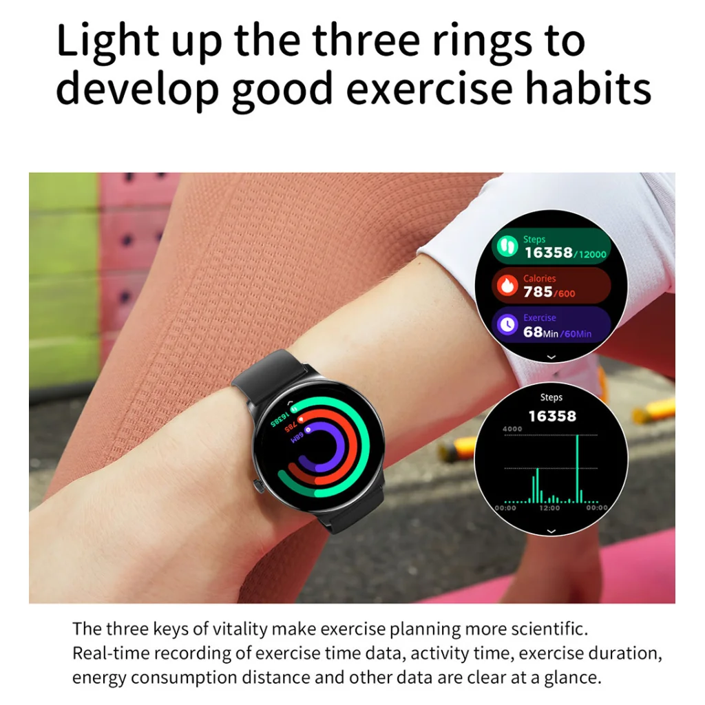 - Tudományos edzéstervezés: Az innovatív aktivitásgyűrűk (lépések, kalóriák, edzésidő) és a részletes adatgyűjtés (edzésidő, aktivitási idő, energiafogyasztás, megtett távolság) segítségével tudományos alapokon tervezheti meg és fejlesztheti edzésszokásait.