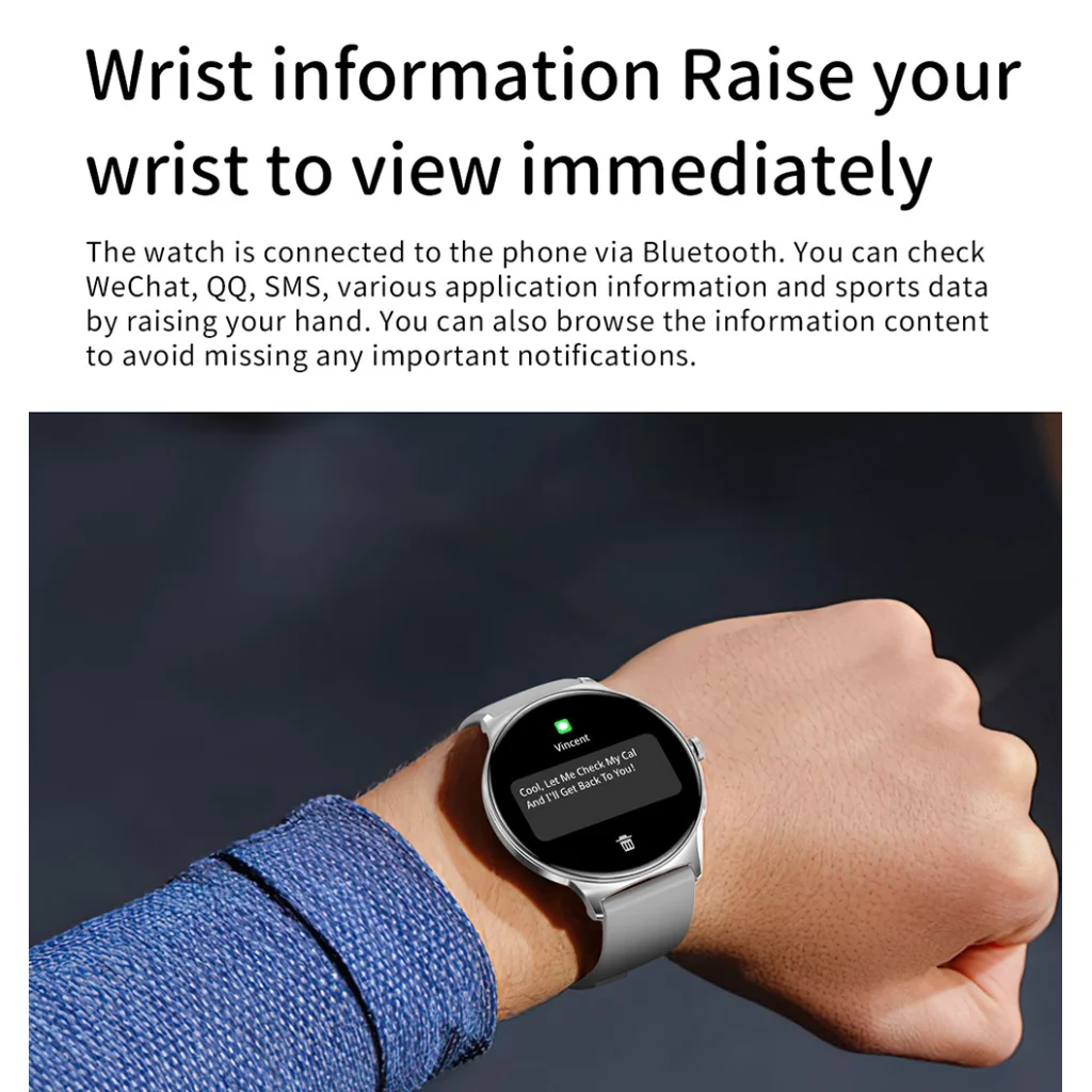 - Értesítések egy csuklórántásra: Csatlakoztassa az órát telefonjához, és egy egyszerű csuklórántással azonnal megtekintheti bejövő hívásait, SMS-eit, üzeneteit olyan alkalmazásokból, mint a WeChat és QQ, valamint egyéb fontos értesítéseket. Soha többé nem marad le semmiről!
