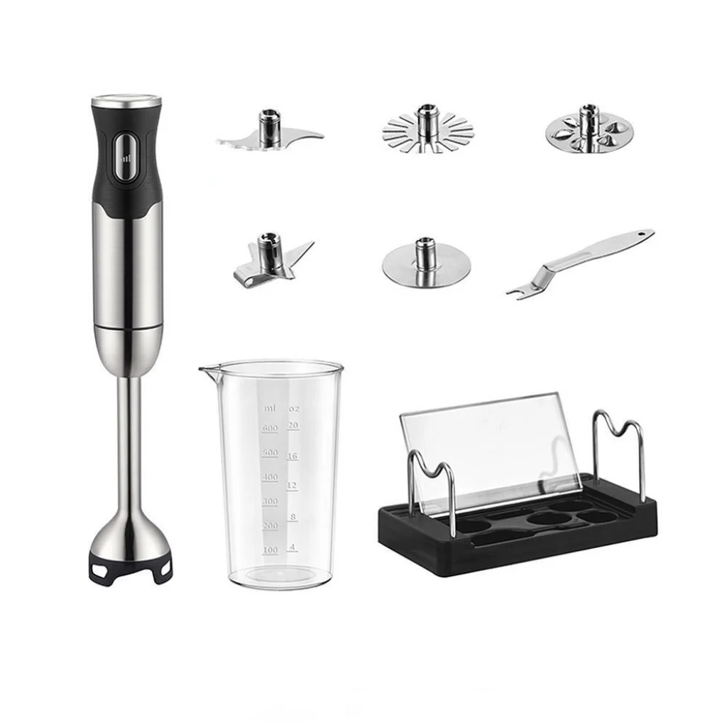 A készlet tartalma: kézi mixer, keverőhegy, aprító, habverő, keverő, mérős pohár