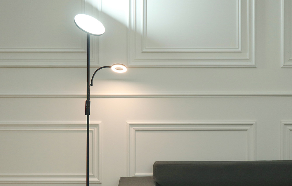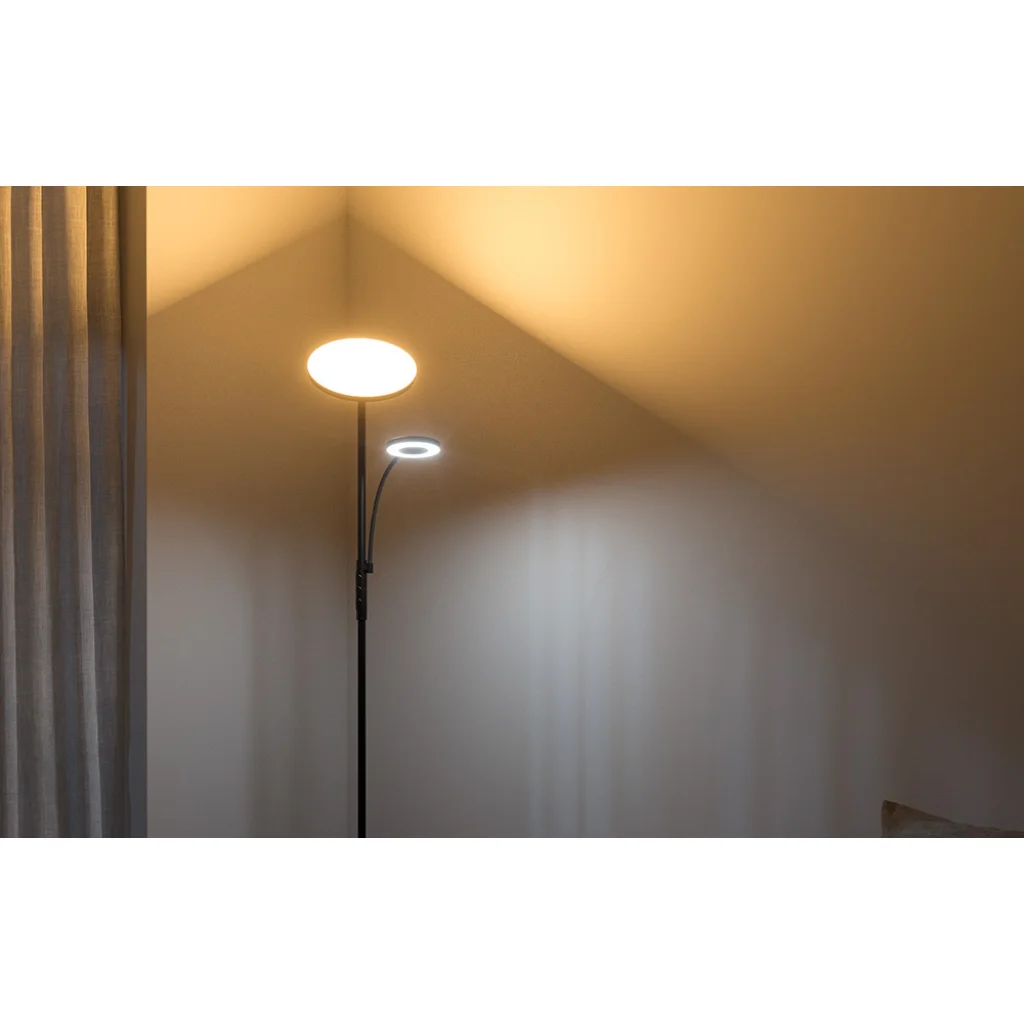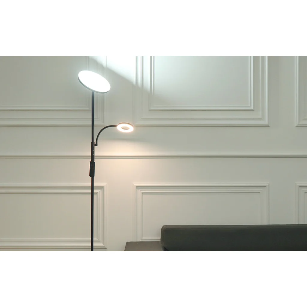 Dupla állólámpa távirányítóval BlitzWill BWL-FL-0001 36W (fekete). Biztosítsd otthonodban az optimális világítást! A BWL-FL-0001 lámpa 2 forgatható fejjel van felszerelve, és lehetővé teszi a fény színhőmérsékletének 4 fokozatban történő beállítását 2700-6500K között. A fényerő is állítható. Emellett a készülék megjegyzi az utoljára használt beállításokat. A szett tartalmaz egy praktikus távirányítót is.