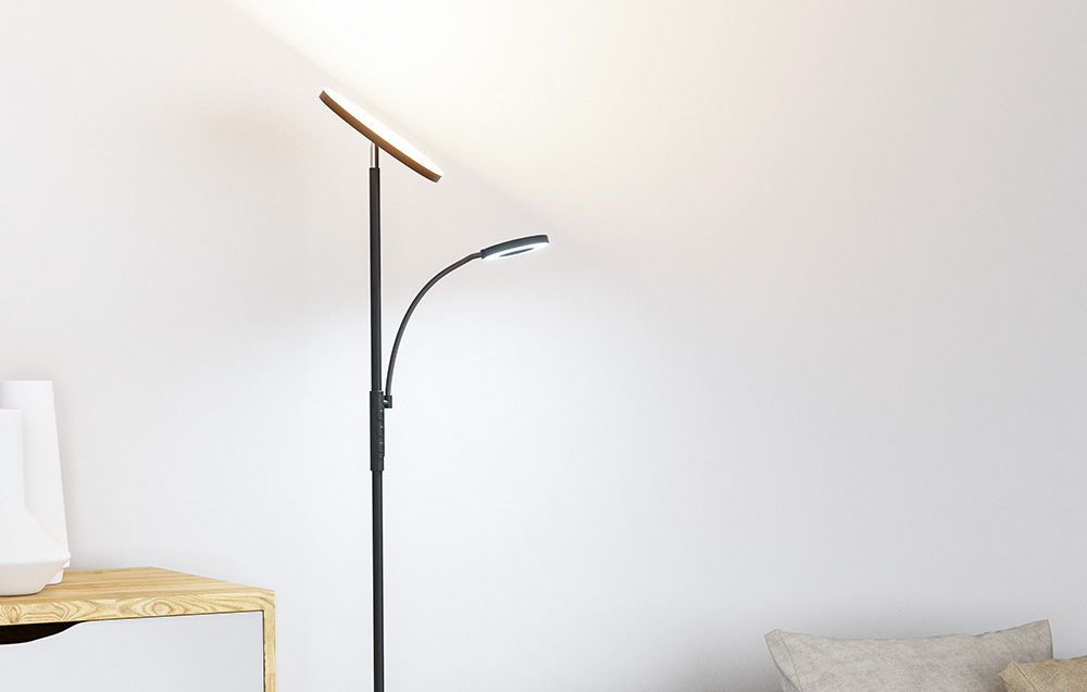 Biztosítsd a tökéletes megvilágítást bármilyen helyzetben! A lámpa 2 állítható fejjel van felszerelve, így pontosan úgy helyezheted el, ahogy szeretnéd! A nagyobb fej 350°-ban forgatható, és 180°-ban dönthető. A kisebb fej 360°-ban forgatható. Élvezd az optimális fényirányt, és növeld a kényelmet munka vagy pihenés közben!