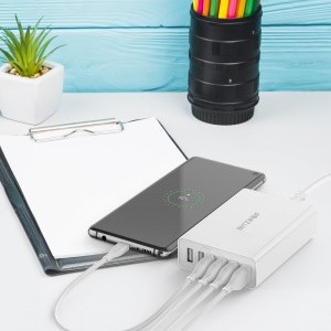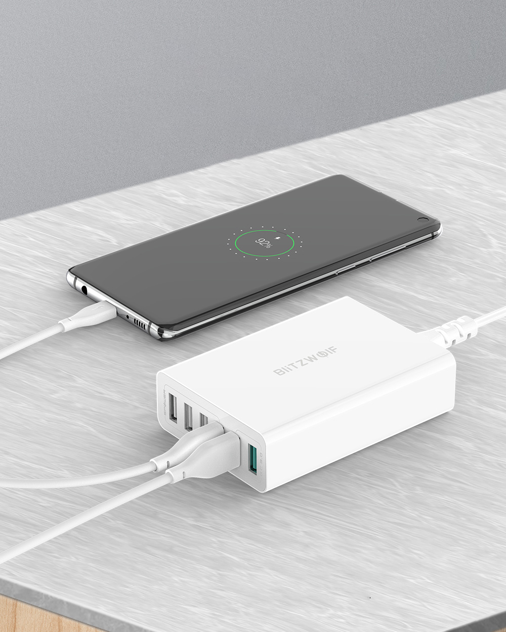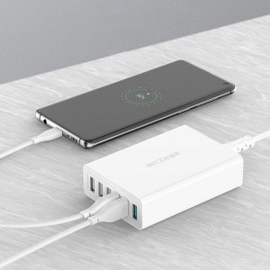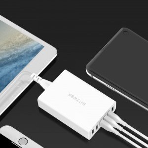 Termék leírás 6x USB csatlakozóval, 2x QC 3.0 támogatással és 4x normál USB 2.0 QC3.0 QC2.0, Huawei FCP, Apple 2.4A, Samsung, BC1.2 töltés támogatással 23mm x 65mm x 94mm méret 60W teljesítmény 100-240V 50 / 60Hz 1.7A bemenet 5V feszültség