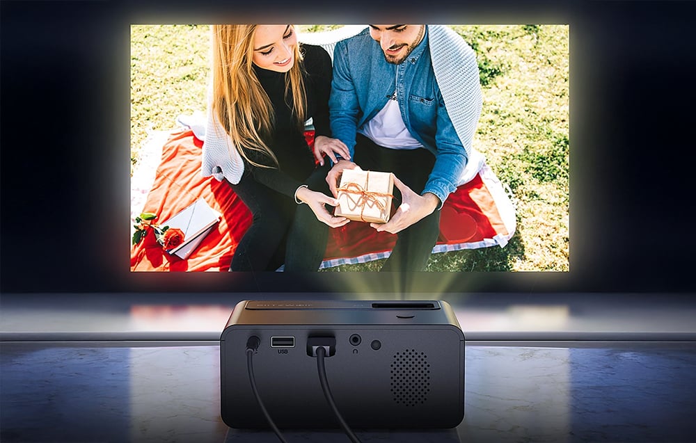 A kivetítő HDMI és USB portokkal van felszerelve, így számos eszköz, például laptopok, játékkonzolok, TV Sticks és médialejátszók csatlakoztatását teszi lehetővé. Így kényelmesen nézheti kedvenc tartalmait a nagyképernyőn - például a Netflixről származó sorozatokat vagy YouTube-videókat.