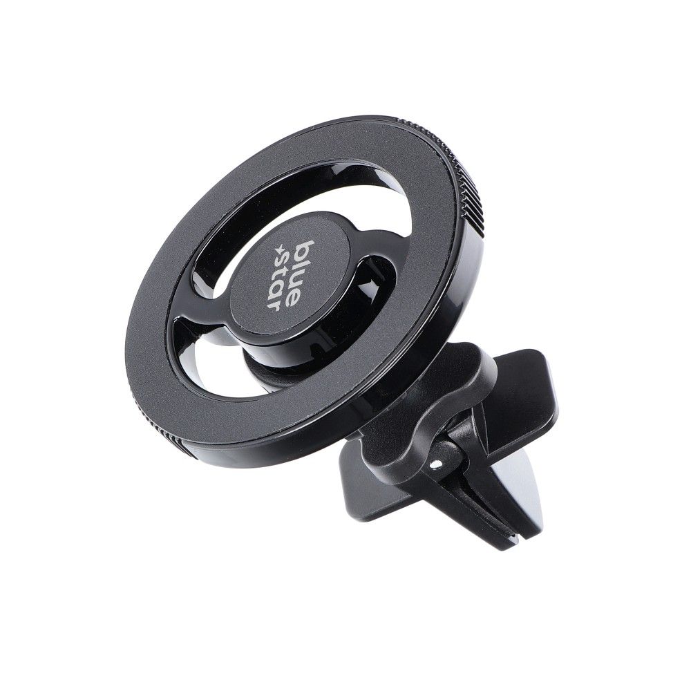 BLUE STAR CLAMP egy mágneses autós telefontartó, amely biztosítja a kényelmes és biztonságos rögzítést az okostelefonnak a jármű szellőzőrácsán. A MagSafe technológiával kompatibilis tartó ideális megoldás az iPhone 12 sorozat vagy újabb készülékek, valamint a mágneses rögzítést támogató tokok használói számára. Az erős, a tartóba épített mágnes biztosítja, hogy az okostelefon dinamikus vezetés közben is a helyén marad, így megszüntetve az aggodalmakat a készülék véletlen megcsúszásáról vagy leeséséről. Az innovatív kialakítás és a könnyű telepítés nemcsak praktikus, de stílusos kiegészítővé is teszi a tartót bármely autó belső terében. A kompakt forma és a masszív szerkezet révén a tartó tartós és diszkrét. A tartó telepítése gyors és intuitív – egyszerűen csatlakoztassa a szellőzőrácsra, és helyezze készülékét vagy tokját, amely támogatja a MagSafe technológiát, a tartóra. A két mellékelt fém körnek köszönhetően a tartó használható olyan okostelefonokkal is, amelyek nem támogatják a mágneses rögzítést. Specifikáció:Telepítés helye: szellőzőrács Okostelefon rögzítése: mágneses (MagSafe) Tartozékok: két fém kör, alkoholos törlőkendő