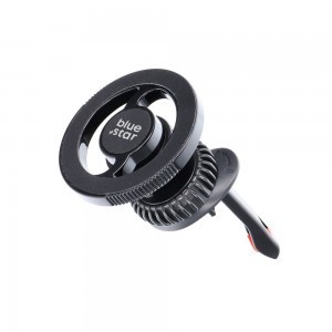 BLUE STAR FLIPTOK X1 egy mágneses autós tartó, amely biztosítja az okostelefon kényelmes és biztonságos rögzítését a jármű légbeömlőjéhez. A tartó kompatibilis a MagSafe technológiával, így ideális megoldást nyújt az iPhone 12 sorozat vagy újabb készülékek, illetve a mágneses rögzítést támogató tokok felhasználói számára. A tartó előnye forgatható kialakítása, amely lehetővé teszi a készülék megtekintési szögének egyszerű beállítását 360 fokban. Emellett rendelkezik forgási mechanizmus zárral is. Az erős mágnes beépítve a tartóba biztosítja, hogy az okostelefon helyén maradjon még dinamikus vezetés közben is, kiküszöbölve a készülék véletlen elcsúszását vagy leesését. Az innovatív dizájn és az egyszerű telepítés nemcsak praktikus, hanem stílusos kiegészítőjévé teszi a tartót bármely autó belső tere számára. Kompakt formájának és szilárd szerkezetének köszönhetően a tartó tartós és diszkrét. A tartó telepítése gyors és intuitív – egyszerűen rögzítse a légbeömlőre és helyezze rá MagSafe-támogatott készülékét vagy tokját. A két mellékelt fémkorongnak köszönhetően a tartó olyan okostelefonokkal is használható, amelyek nem támogatják a mágneses rögzítést.