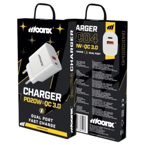 Fali töltő PD és QC 4.0 gyorstöltési funkcióval és C típusú aljzattal, a legmodernebb, akár 25 W teljesítményigényű telefonokhoz tervezve.