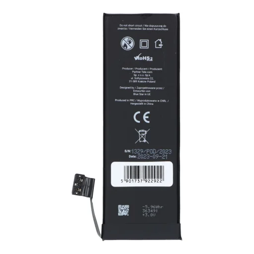 A Blue Star HQ akkumulátor az iPhone modellekhez lett tervezve. Maximális precizitással készült, tökéletesen illeszkedik a dedikált modellhez. Tesztek sorozata megerősíti a biztonságos működését. Lítium-ion cellákból készült a legújabb technológiák, köztük a lézerhegesztés és a precíz automatizálás felhasználásával. Az akkumulátor élettartama 800 töltési/kisütési ciklus. A kutatások kimutatták, hogy még 500 töltési ciklus után is a Blue Star HQ akkumulátorok 80% kapacitást mutattak. Ugyanebben a vizsgálatban a standard akkumulátorok 75%-ot értek el mindössze 120 ciklus után. Az akkumulátor kettős IC védelmi rendszerrel rendelkezik, amely egyrészt szabályozza az áram áramlásának stabilitását az akkumulátor és a telefon között, másrészt 1% pontossággal jelzi az eszköz valós töltöttségi állapotát. Ezáltal a felhasználó készen áll a töltőkészülék csatlakoztatására, és nem érheti kellemetlen meglepetés a hirtelen leállás miatt. Az akkumulátornak számos védelme van: túltöltés, kisütés, rövidzárlat és hővédelem ellen. Hatékonyan működik magas és alacsony hőmérsékleten. A készlet tartalmaz szerelőszalagot az akkumulátorok könnyű beszereléséhez. A szalag nagyon tartós, és akár 5 kg húzóerővel is tesztelték. Specifikáció: Cellák: li-lon Kettős IC védelmi chip Memória effektus nélkül Ciklusok száma: 800 Szerelőszalag mellékelve.