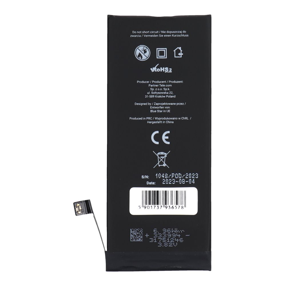 Blue Star HQ akkumulátor, amely iPhone modellekhez készült. Maximális precizitással készült, tökéletesen illeszkedik a dedikált modellekhez. Egy sor teszt igazolja biztonságos működését. Lítium-ion cellákból készült, a legújabb technológiák alkalmazásával, beleértve a lézerhegesztést és a precíz automatizálást. Az akkumulátor élettartama 800 töltési / kisütési ciklus. Kutatások kimutatták, hogy még 500 töltési ciklus után is a Blue Star HQ akkumulátorok 80%-os kapacitást mutattak. Ugyanebben a tanulmányban a standard akkumulátorok már csak 75%-ot értek el 120 ciklus után. Az akkumulátor kettős IC védelmi rendszert tartalmaz, amely egyrészt kontrollálja az áram stabil áramlását az akkumulátor és a telefon között, másrészt 1%-os pontossággal jelzi az eszköz valós töltöttségi szintjét. Ezáltal a felhasználó készen áll a töltőkészülék csatlakoztatására, és nem éri váratlan leállás. Az akkumulátor számos védelmet biztosít: túltöltés, kisülés, rövidzárlat és hővédelem ellen. Hatékonyan működik magas és alacsony hőmérsékleten is. A készlet tartalmaz egy szerelési szalagot az akkumulátorok könnyű telepítéséhez. A szalag nagyon tartós, és akár 5 kg feszítőerővel is tesztelték. Specifikáció: Cellák: li-lon Kettős IC védelmi chip Memória effektus nélkül Ciklusok száma: 800 Szerelési szalag mellékelve.