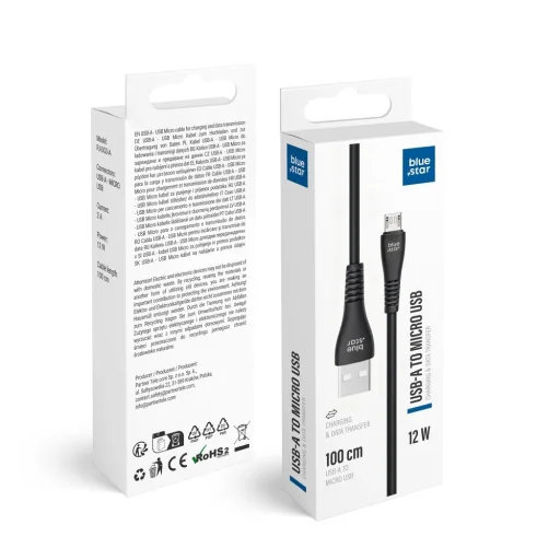 Blue Star Micro USB kábel USB-A-ról Micro USB-re 2A 12W 1 m PJ-DG3-A fekete