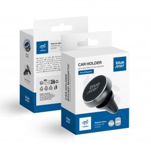 A BLUE STAR ROUND MAGNETIC autós tartó elegáns és funkcionális kiegészítője az autójának. A könnyű használatra tervezett tartó lehetővé teszi, hogy gyorsan és stabilan rögzítse telefonját a szellőzőrácshoz az erős mágnes segítségével. A tartó előnye a forgatható kialakítása, amely lehetővé teszi, hogy a készülék látószögét könnyedén 360 fokban beállíthassa. Az egyszerű és gyors rögzítési mód a szellőzőrácshoz rendkívül praktikus, és nem igényel további eszközöket. A készlet két fémlemezt (kerek és téglalap alakú) és egy alkohollal átitatott alapozót is tartalmaz, amely lehetővé teszi a problémamentes felszerelést és további biztonságot nyújt a mobilkészülék számára. Specifikáció: