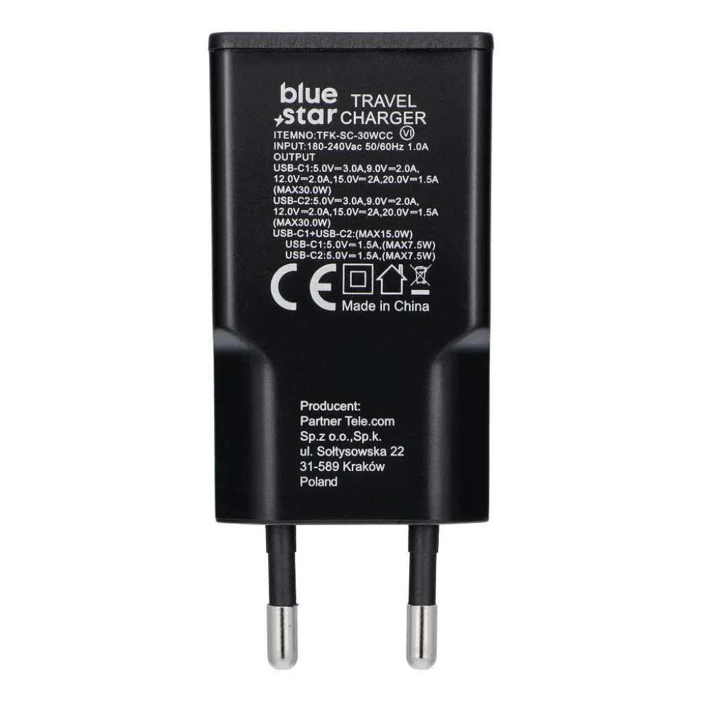 Két USB-C port: A Blue Star Slim GaN két USB-C porttal van felszerelve, lehetővé téve két eszköz egyidejű töltését – mint például okostelefonok, tabletek, fejhallgatók vagy power bankok – gyorsan és kényelmesen.