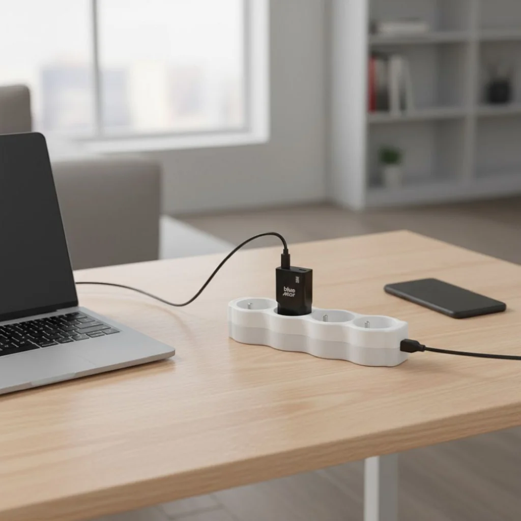 A modern Blue Star Slim GaN fali töltő a gyors és biztonságos töltéshez készült okostelefonok, tabletek és más mobil eszközök számára. A GaN technológiának köszönhetően nemcsak rendkívül hatékony, hanem kivételesen kicsi és kényelmes a mindennapi használathoz.