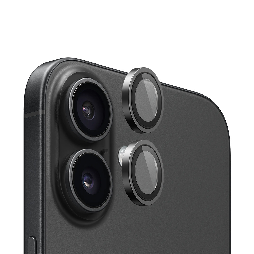 Termék leírás Blueo - Eredeti Fém Keret Lencsevédő (2 darabos csomag) - iPhone 16 / iPhone 16 Plus - Fekete üvegfólia