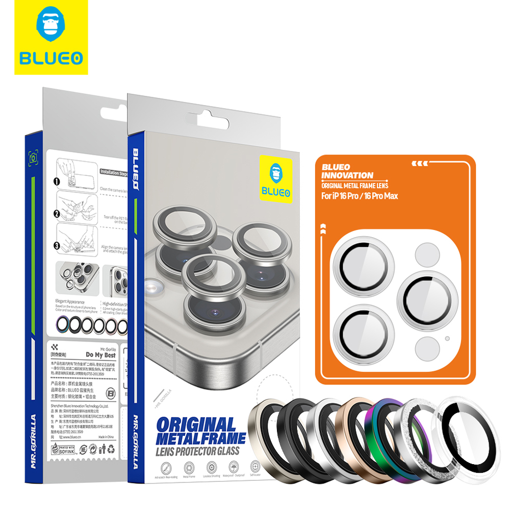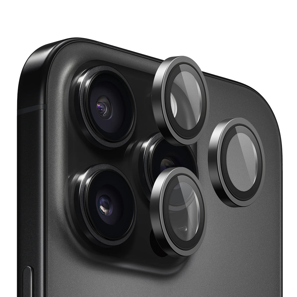 Termék leírás Blueo - Eredeti Fém Keretes Lencsevédő (3 darab) - iPhone 16 Pro / iPhone 16 Pro Max - Fekete Titán üvegfólia
