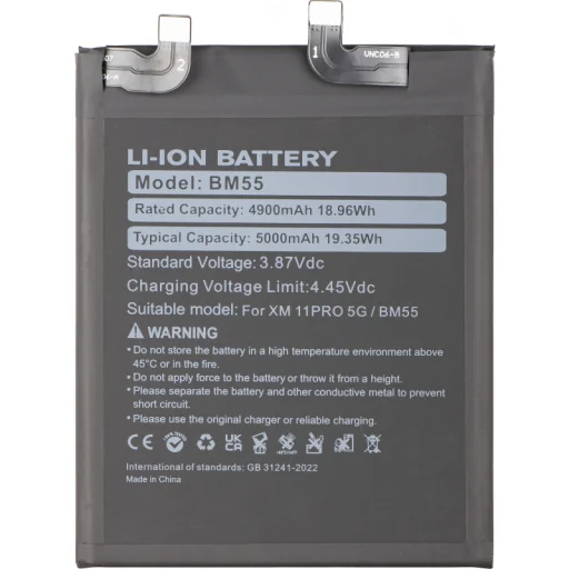 BM55 akkumulátor Xiaomi Mi 11 Ultra készülékhez. Ez az utángyártott akkumulátor kiváló minőségű csere, amely megkönnyíti a készülék teljesítményének és megbízhatóságának helyreállítását. Legyen szó akkumulátor romlásról vagy egyszerűen megbízható tartalékra van szüksége, ez az akkumulátor költséghatékony és hatékony megoldást kínál, amely a telefon optimális teljesítményét biztosítja. Ugyanazzal a kapacitással van tervezve, mint az eredeti, így hosszan tartó teljesítményt és zökkenőmentes működést nyújt, biztosítva a folyamatos és megbízható élményt - éppen úgy, mint a gyárilag beépített változat.