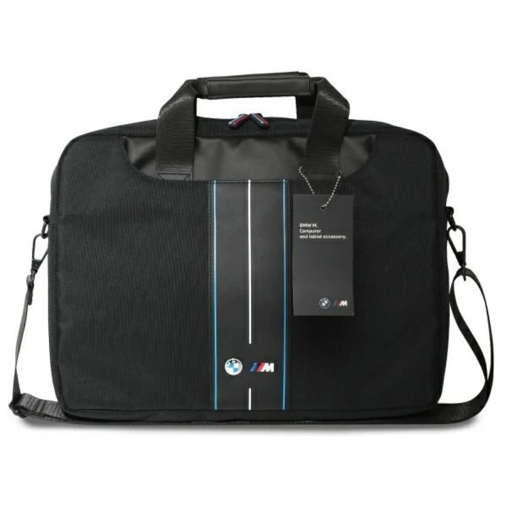 Laptop táska BMW Nylon Kék Csík Az elegáns BMW Nylon Kék Csík laptop táska tökéletes választás azoknak a bavariai autógyár rajongóknak, akik értékelik a stílusos és funkcionális kiegészítőket. Ez a modell ötvözi a modern dizájnt a BMW márka által kínált minőséggel, így egy egyedi kiegészítőt hoz létre azok számára, akik divatos megoldásokat keresnek a mindennapi használatra. Mindennapi funkcionalitás A BMW laptop táska a modern stílus és a funkcionalitás tökéletes kombinációja, amely a legigényesebb felhasználók elvárásainak is megfelel. Kiváló minőségű nylonból és öko-bőrből készült, elegáns és tartós megjelenést biztosít. A táska elején egy fém BMW logó és az M Power embléma található, amely kihangsúlyozza annak rangos karakterét. Ezenkívül az M Power színekben található keskeny csíkok sportos hangsúlyt adnak neki, megkülönböztetve a hagyományos táskáktól.