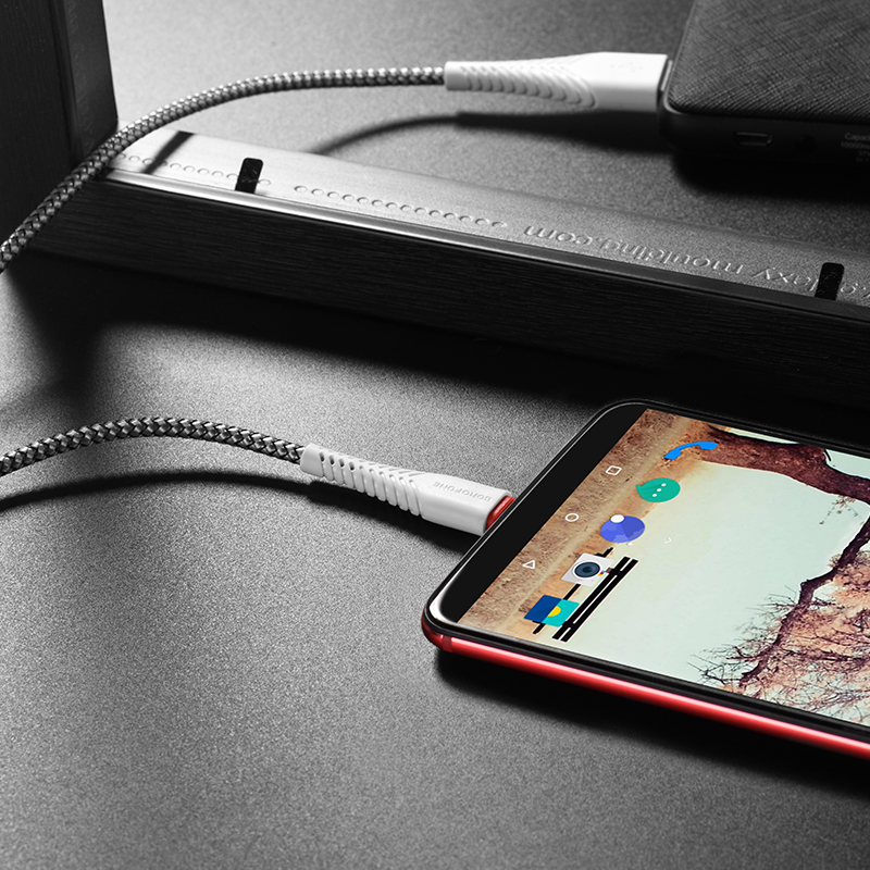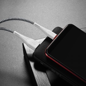 Termék leírás Hossz: 1m, Súly: 22g.Külső fonat: nylon.Csatlakozó anyaga: TPE.Vezetékmag: 24AWG(43/0.08)*2C piros/fekete 28AWG(16/0.08)*2C fehér/zöld,PE,OD:2.3*6.0.Támogatja a töltést és az adatátvitelt.
