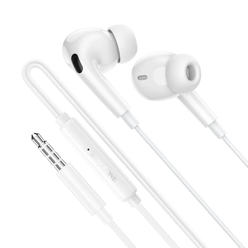 A Borofone Vezetékes Fülhallgatók BM100 Pro Fuente mikrofonnal - fehér modern fülre helyezhető fejhallgatók, amelyek a kiváló hangminőséget kombinálják a felhasználói kényelemmel. Tartós ABS-ből és rugalmas TPE-ből készültek, így biztosítják a kényelmes viseletet és a tiszta hangzást. A BM100 Pro Fuente 3,5 mm-es audio csatlakozót, valamint egy beépített mikrofonnal ellátott vezérlőt tartalmaz, amely egyetlen multifunkciós gombbal rendelkezik, így egyetlen gombnyomással fogadhatja a hívásokat és irányíthatja a lejátszást. -Anyag: ABS + TPE -Meghajtó: 10 mm -Kábel hossza: 1,2 m; Súly: 13 g -Audio csatlakozó: 3,5 mm -Mikrofon: beépített vezérlő mikrofonnal -Vezérlés: egyetlen multifunkciós gomb a kábelen