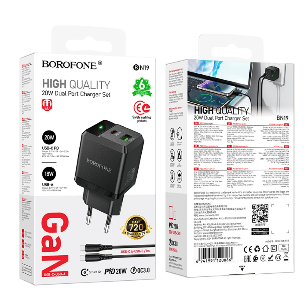 - Kimenet: USB-C: 20W (PD/QC/FCC/AFC) | USB-A:18W(QC/FCP/AFC)| Teljes kimenet: 5V/3A