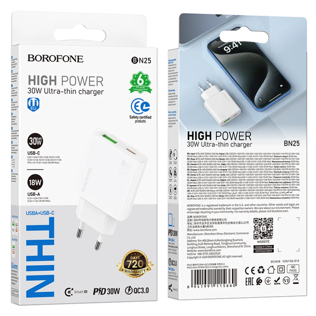 - Kimenet: USB-C: 30W (PD/QC/FCP/AFC); USB-A:18W(QC/FCP/AFC); USB-C+USB-A=5V/3A