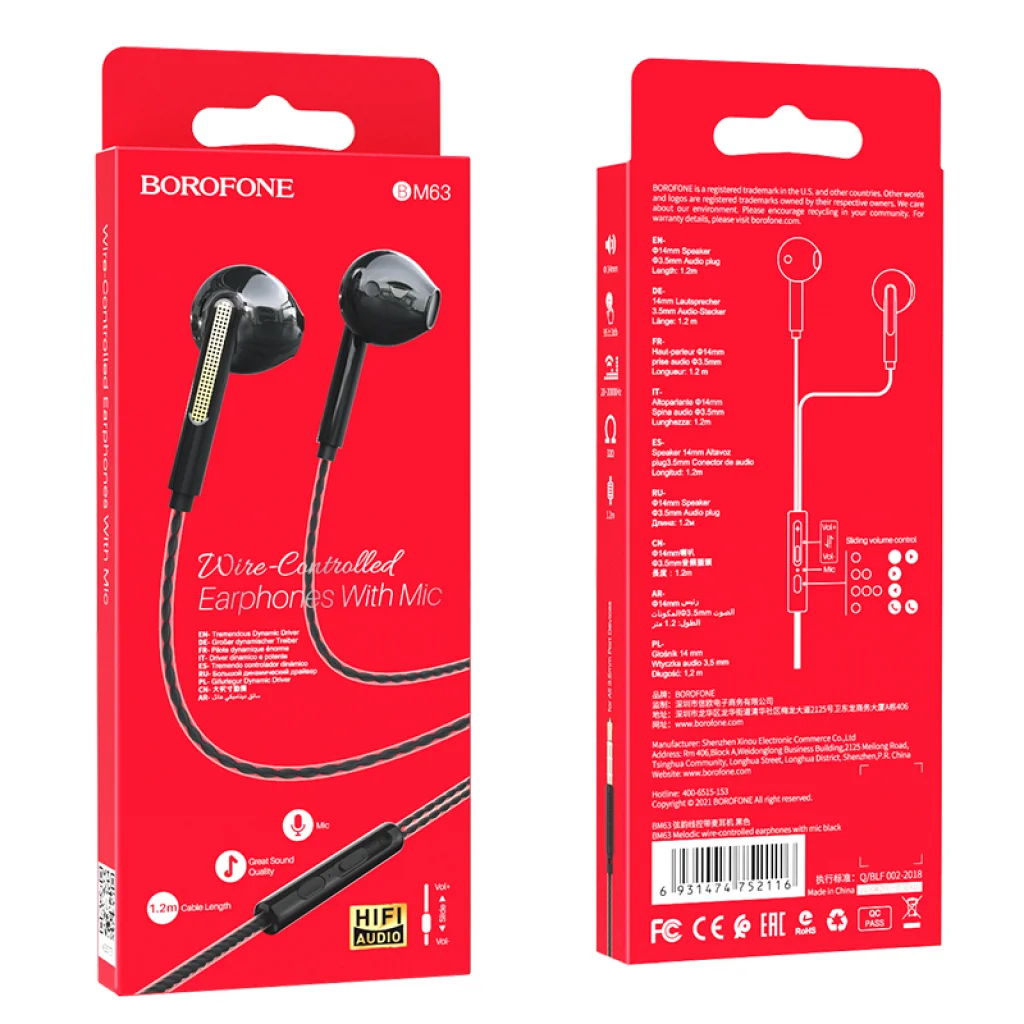 Termék leírás Vezetékes sztereó fülhallgatóHiFi hangminőség3.5mm jack csatlakozóvalBeépített mikrofonnal1.2m hosszúságú kábellelSúly: 11g