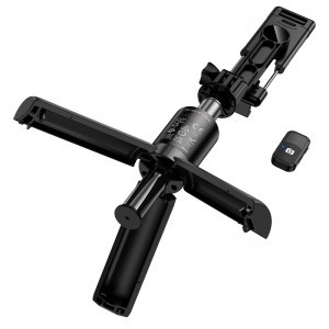 A Borofone Selfie Bot BY14 Graceful Bluetooth állvánnyal és távirányítóval – fekete egy sokoldalú és elegáns megoldás fényképek és élő közvetítések készítéséhez. Tartós ABS-ből és rozsdamentes acélból készült, texturált felülettel, ötvözi a stílust és az állvány valamint a vezeték nélküli távirányító funkcionalitását. A BY14 Graceful állítható magasságot kínál 62 cm-ig és Bluetooth 5.2 távirányítóval rendelkezik 120 mAh akkumulátorral, megkönnyítve a tökéletes kép elkészítését. Ideális szelfik, fényképezés és élő közvetítések számára beltéren és kültéren egyaránt. - Anyag: ABS + rozsdamentes acél - Felületi technológia: texturálás - Méretek: 32.5 × 47.5 × 160 mm (kinyitott magasság: 620 mm); Súly: 108 g - Kompatibilitás: 4.5–7.0″ telefonok (rögzítési tartomány: 60–90 mm) - Távirányító: Bluetooth 5.2; akkumulátor kapacitás: 120 mAh - Alkalmazási területek: kültéri/beltéri élő közvetítések, fényképezés, szelfik, stb.