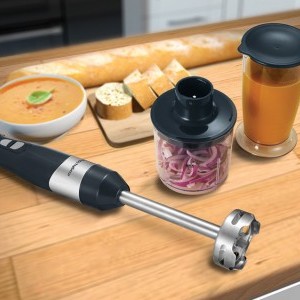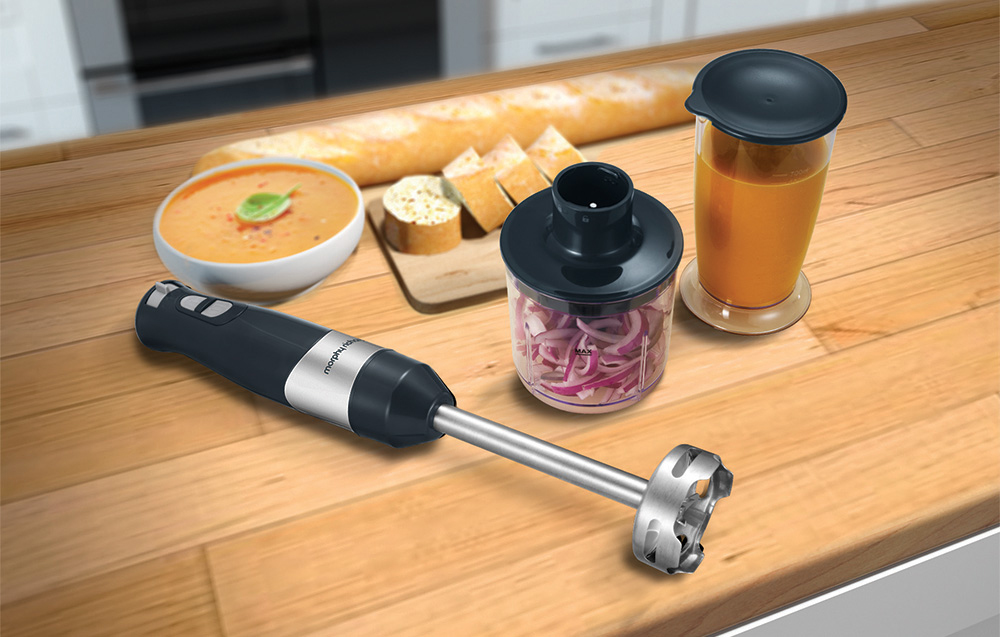 Hozz több ízt és vitamint a konyhádba! A Morphy Richards 402061 botmixer egy erőteljes és praktikus eszköz, amely tökéletes a napi főzéshez. Az erős motorral, turbó móddal és változtatható sebességekkel könnyedén turmixolhatsz, keverhetsz és készíthetsz különféle ételeket – az egészséges levesektől a frissítő turmixokig. Továbbá 700 ml-es mérőedénnyel, darálóval és habverővel érkezik, így még több kulináris lehetőséget kínál.